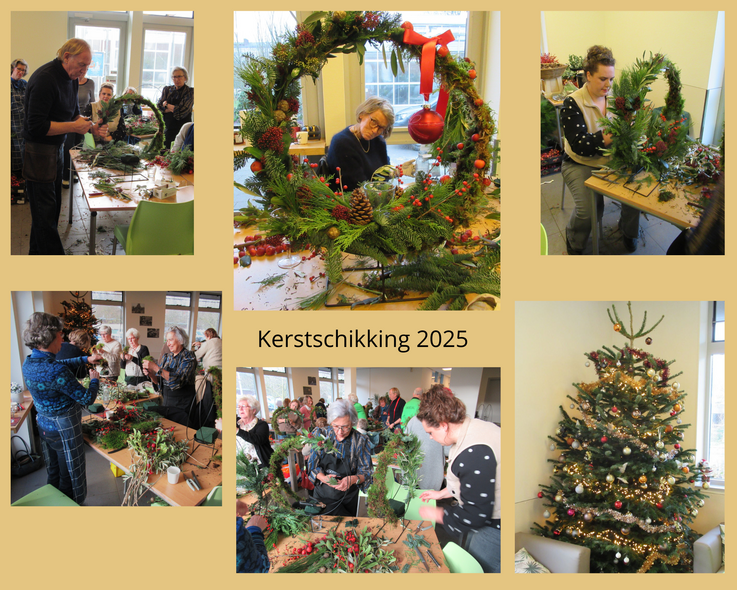 Zadencollectie 2026, foto: Anne Kingma  Terugblik op kerstschikking 14 december 2025Er was overweldigende belangstelling voor de kerstschikking dit jaar: 28 deelnemers maakten in de kantine van de Stadskwekerij onder leiding van Elbert Sterk een origineel en uitdagend kerststuk. Nog 3 mensen kwamen er materiaal ophalen om thuis een stuk te kunnen maken. Met wat kunst en vliegwerk was er voor alle deelnemers plek om te werken. Er waren namelijk onverwacht meer deelnemers dan gepland. Omdat sommigen meteen betaalden zonder zich bij Astrid aan te melden, onstond er overinschrijving. Gelukkig was er toch nog voor iedereen plek. Om teleurstellingen in de toekomst te voorkomen vragen we daarom iedereen die wil deelnemen aan een activiteit om zich éérst aan te melden en om pas na ontvangt van een bevestiging te betalen.
